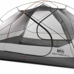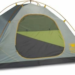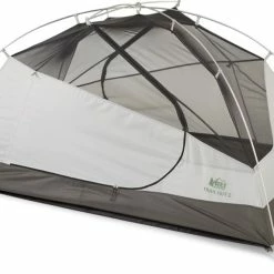 - Weatherproof rainfly with a ridge pole provides an awning over each door