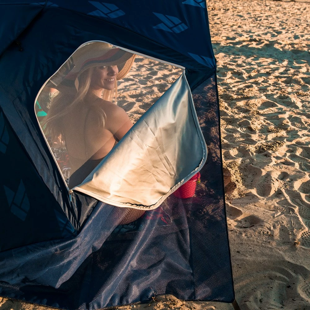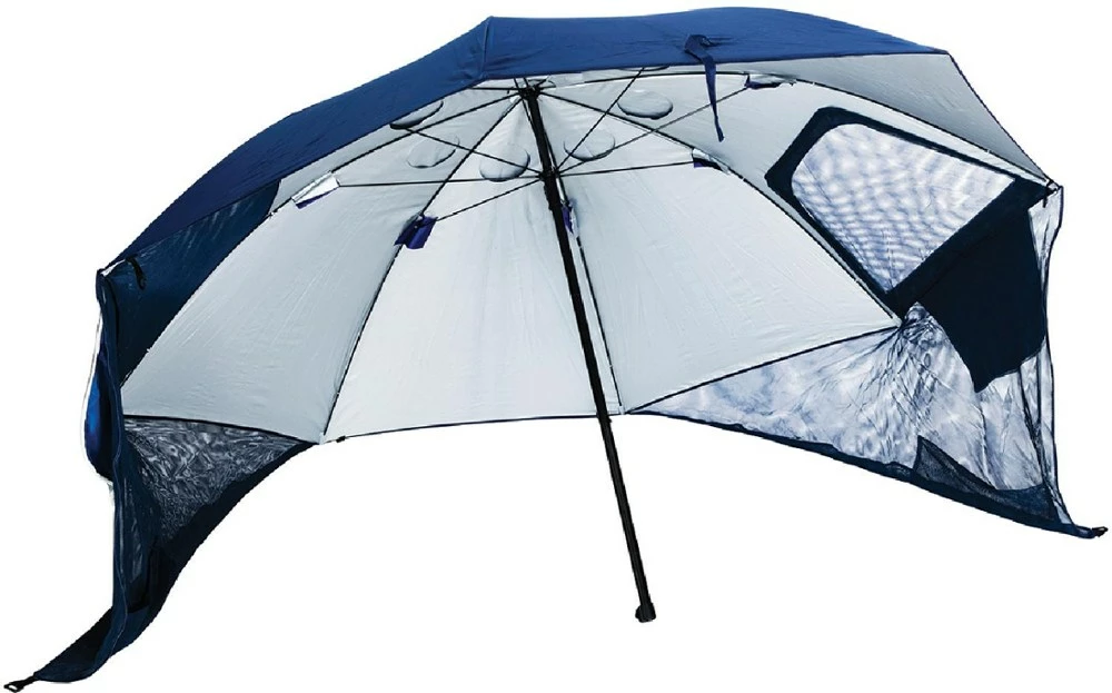 - Offers the protection of a tent with the open-air feel of a traditional umbrella, thanks to a nearly 8 ft. canopy, 2 windows and patented sand-free technology sidewalls