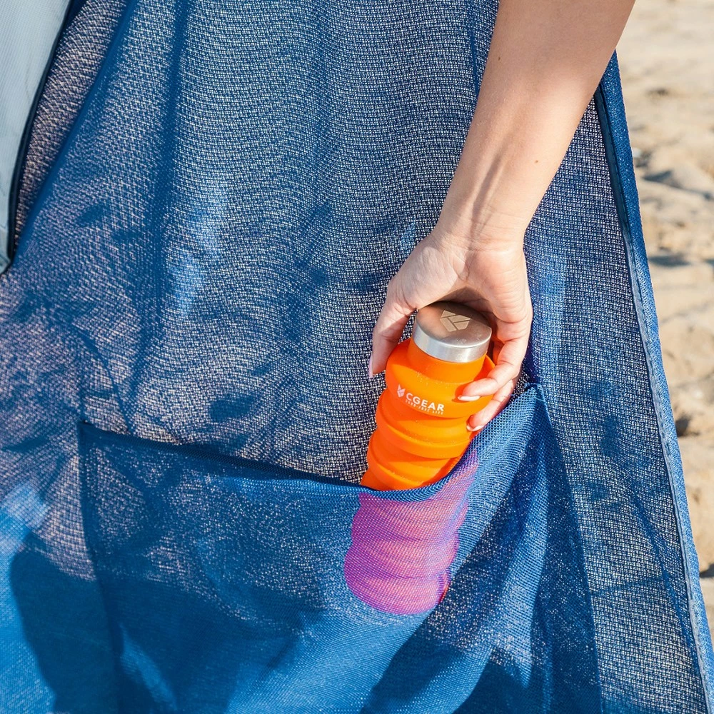 - Patented sand-free tech uses a high-density double-layer weave that allows sand, dirt and dust to fall through the fabric without coming back up