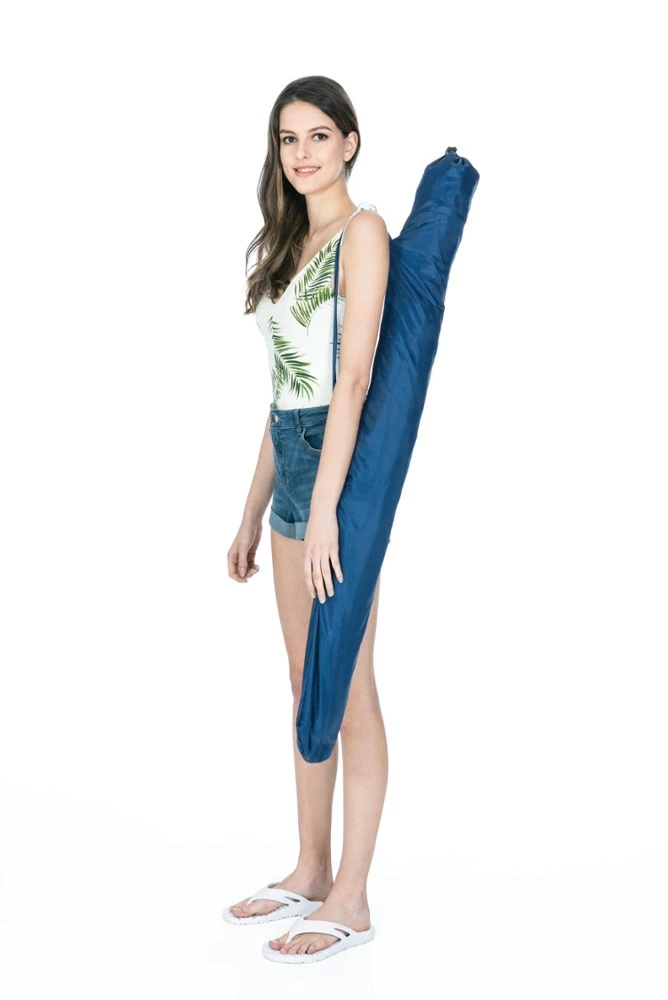 - Easy to set up and easy to take down, the Sand-Free beach umbrella comes with 4 pegs to keep it tied down in windy conditions