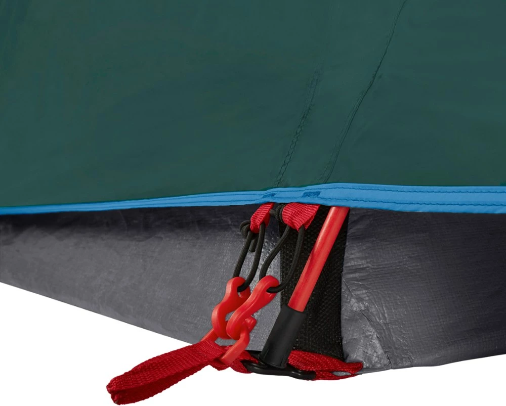 - Front left corner on tent, fly pole and sleeve are color coded red to help orient rainfly