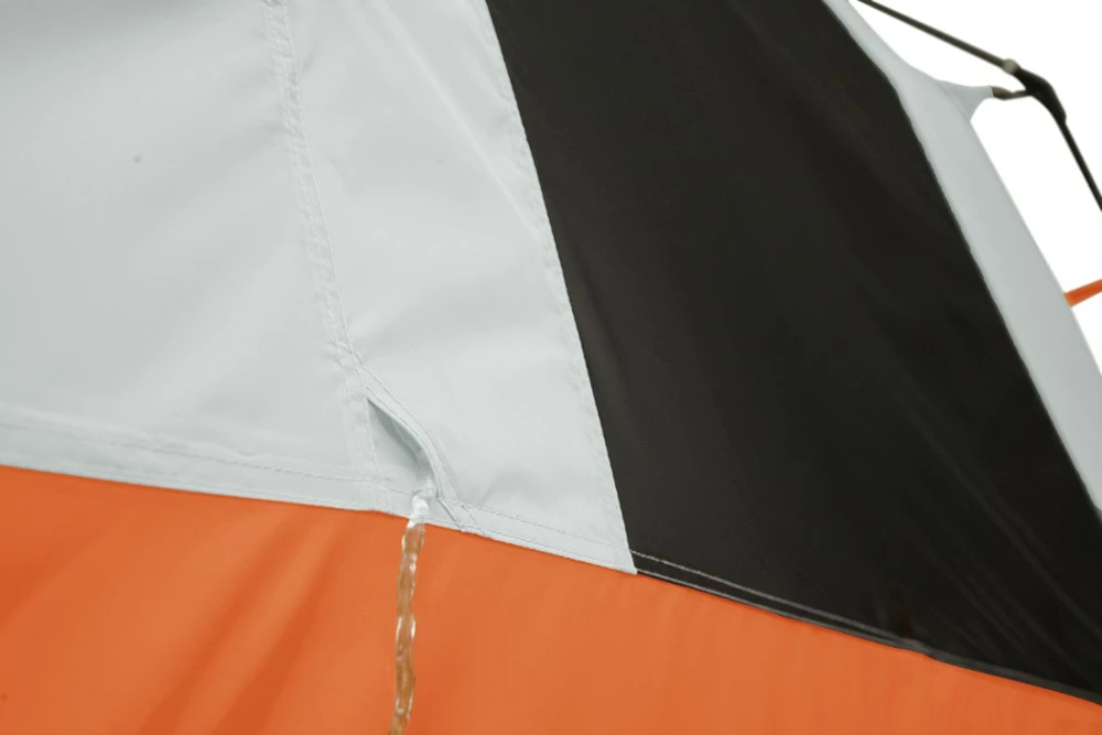 - 4-pole cabin-style tent provides generous living space; near-vertical walls provide standing room and are ideal when camping with air mattresses or cots