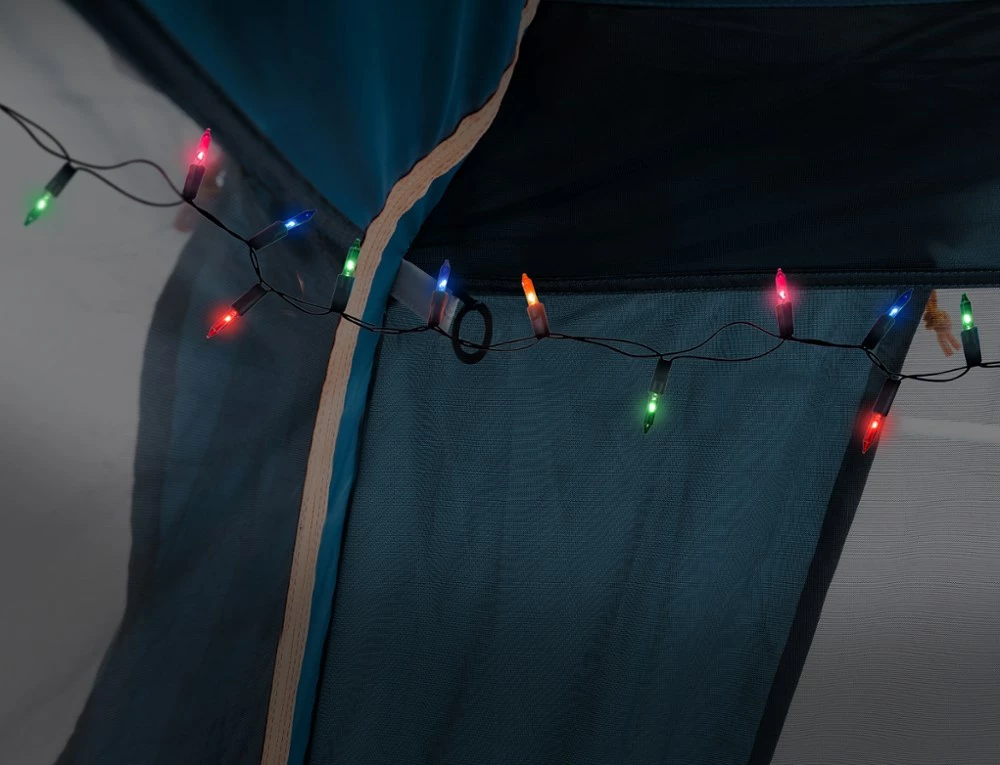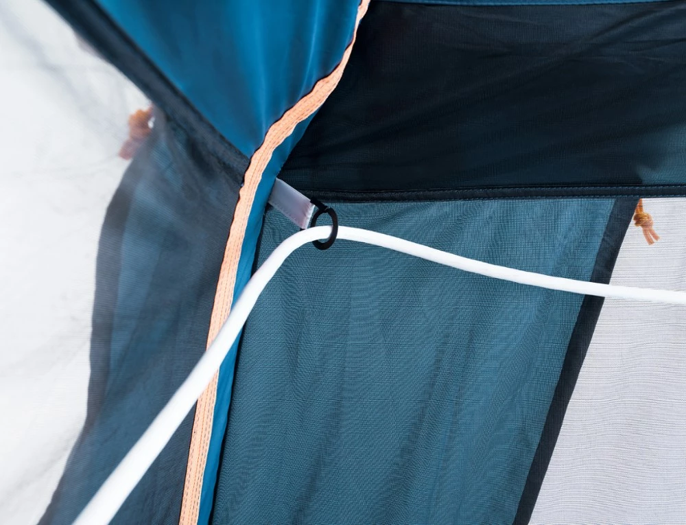 - Integrated awning with 3 poles extends coverage outside the shelter