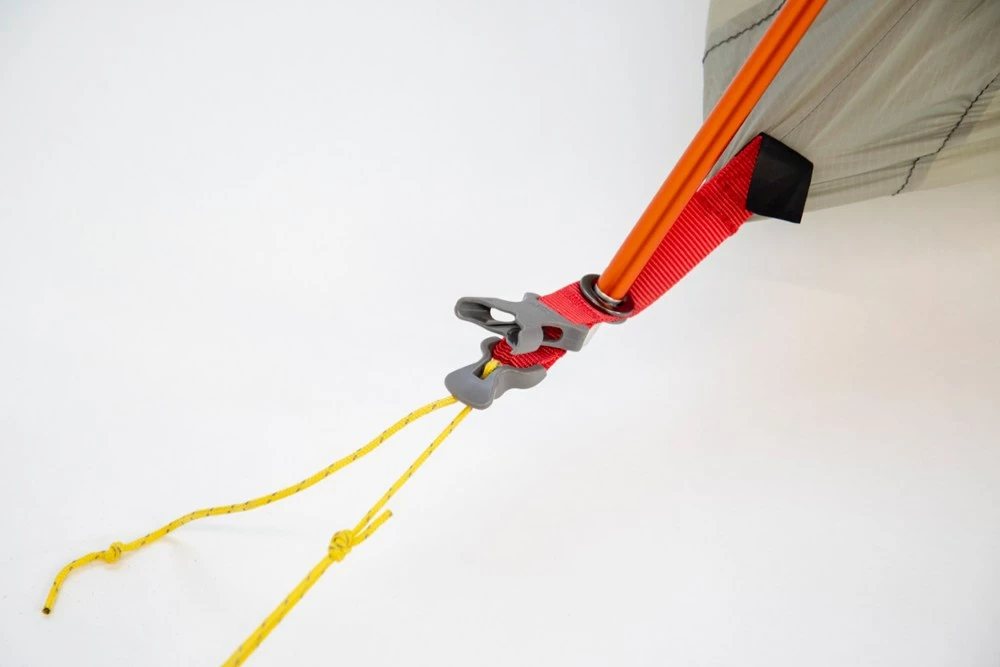 - 12 included ultralight V-peg aluminum stakes secure guylines and pole-end stakeout loops; guylines at each end of the sleeping section increase stability in breezy conditions