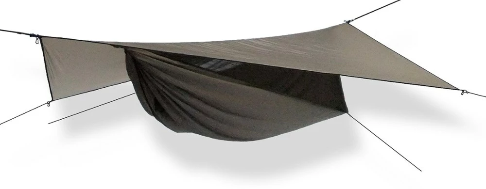 - Patented asymmetric shape of hammock bed improves comfort; asymmetric shape of rainfly improves coverage