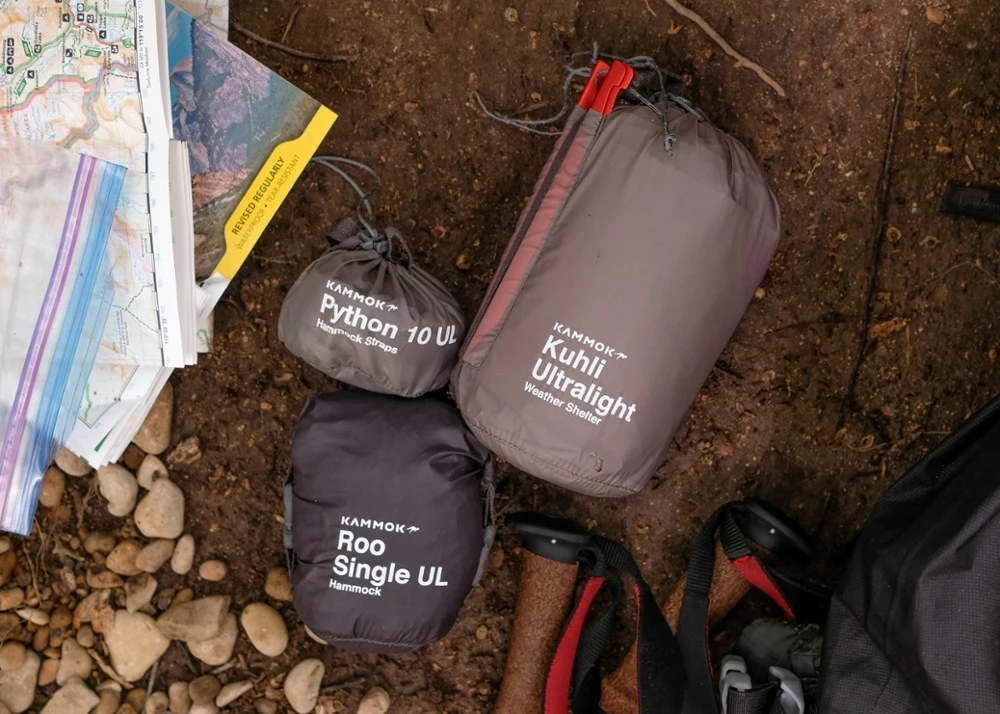 The lightest camping tarp in the Kuhli family, the Kammok Kuhli Ultralight offers shelter from the elements—in the air or on the ground—for just 10 oz.
