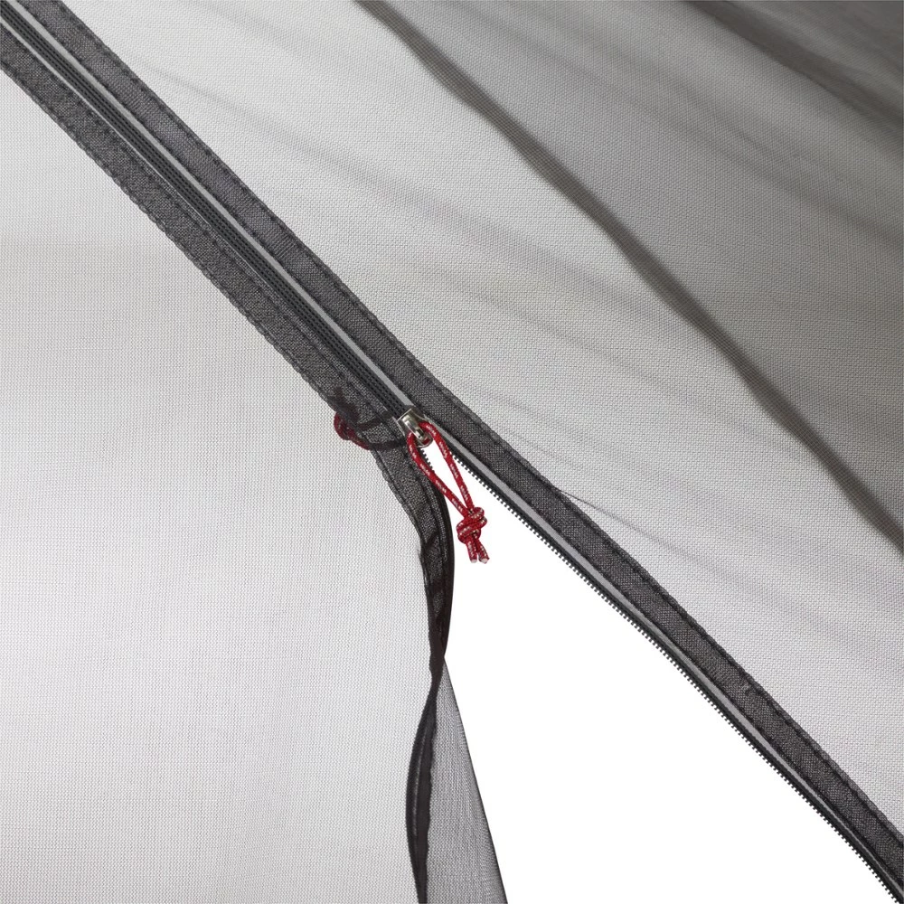 - No-curve tent door has zippers that are easy to use with one hand, and they zip closed to a single point so you always know where to open the door, even in the dark