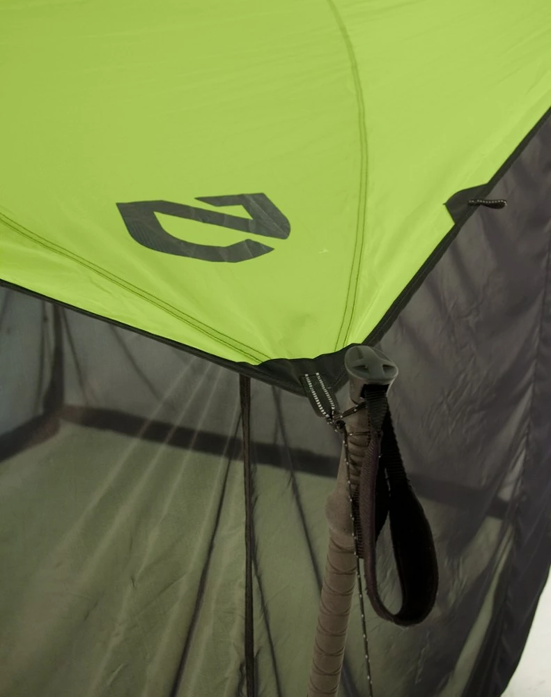 This straightforward shelter consists of a well-designed tarp and mesh walls. The mesh walls of the NEMO Bugout stow securely away or easily drop down for coverage for instant no-see-um protection.