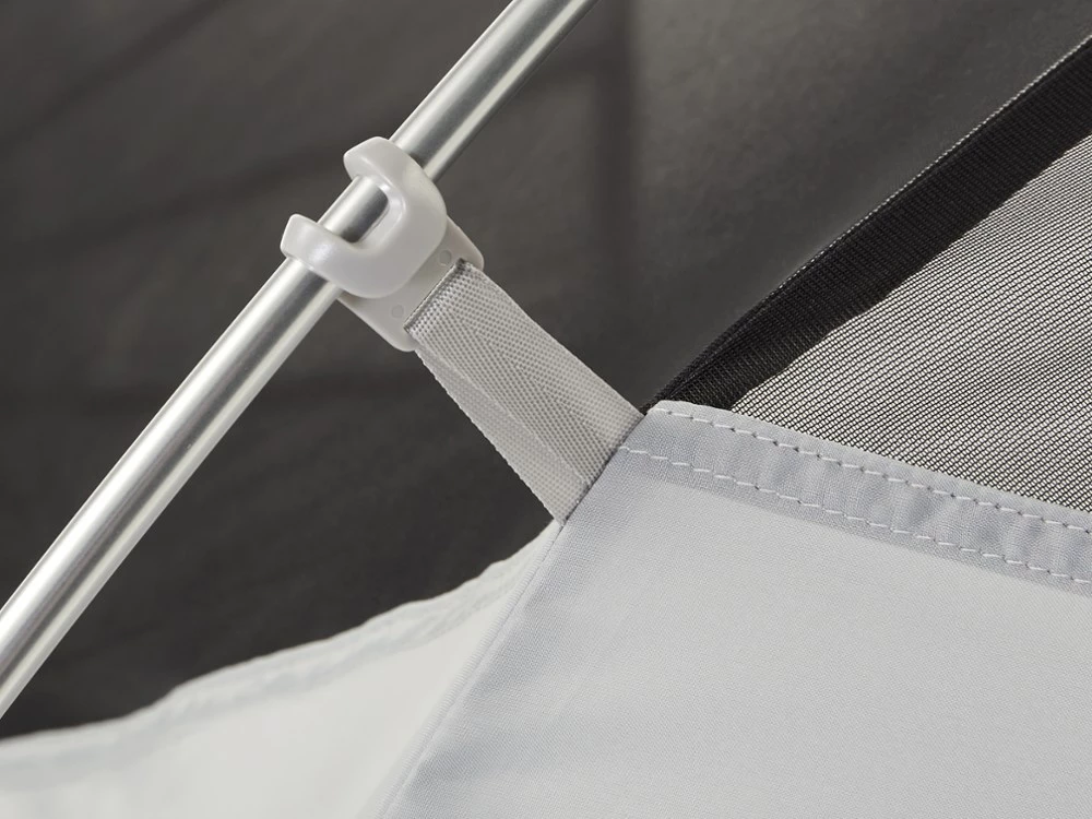 - Fly doors roll up over the roof for a clear sky view, plus improved venting and reduced condensation